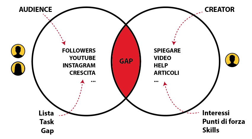 Tutte queste cose dovranno aiutarti a stilare un elenco di tutto ciò che possa completare per bene i bisogni del tuo pubblico, della tua audience, quello che farei è fare una lista delle lacune, di ciò che serve per colmare questo GAP e ciò sarà una valida tabella di marcia. Un buon creator deve iniziare a capire come colmare queste lacune, devi iniziare una bella sfida.