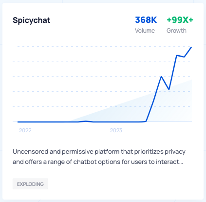 Ho visto questa tendenza esplosiva, ho pensato che l’argomento sarebbe potuto piacere a te che mi stai leggendo e mi sono messo alla ricerca di altre informazioni su SpicyChat, verificando anche su Google se c’è una vera tendenza: