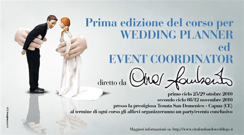 Si aprono le iscrizioni al secono ciclo del CORSO per WEDDING PLANNER & EVENT MANAGER / COORDINATOR promosso dalla testata WEDDINGS LUXURY (Edizioni CALL) e diretto dalla wedding planner & event coordinator Cira Lombardo (www.ciralombardo.it).