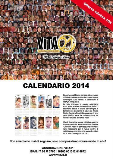 Per ricevere il calendario è necessario fare una donazione all’Associazione VITA21 minimo di 10,00€.