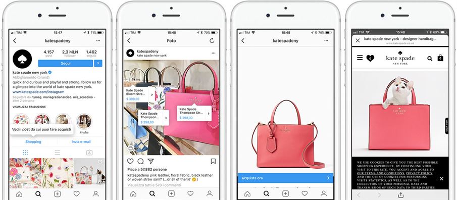 Instagram sta lanciando la sua funzione Shopping (Shoppable Posts) per gli account aziendali in otto nuovi paesi tra cui finalmente l’Italia:
