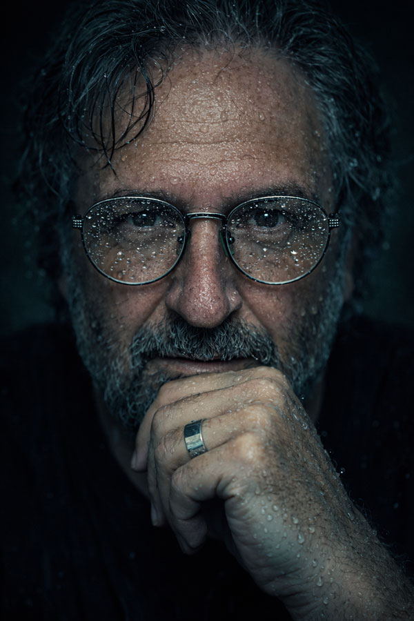 L’illuminazione è low-key, drammatica e direzionale dall’alto, con ombre marcate sotto le sopracciglia, il naso e il mento, per un forte effetto cinematografico e tridimensionale.