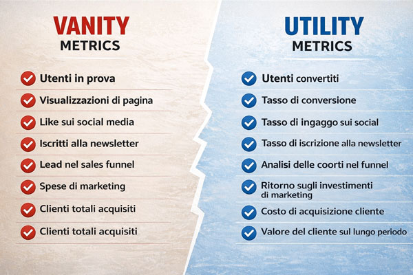 Sono le cosiddette vanity metrics, s chiamano così perché nutrono l’ego, non il progetto.