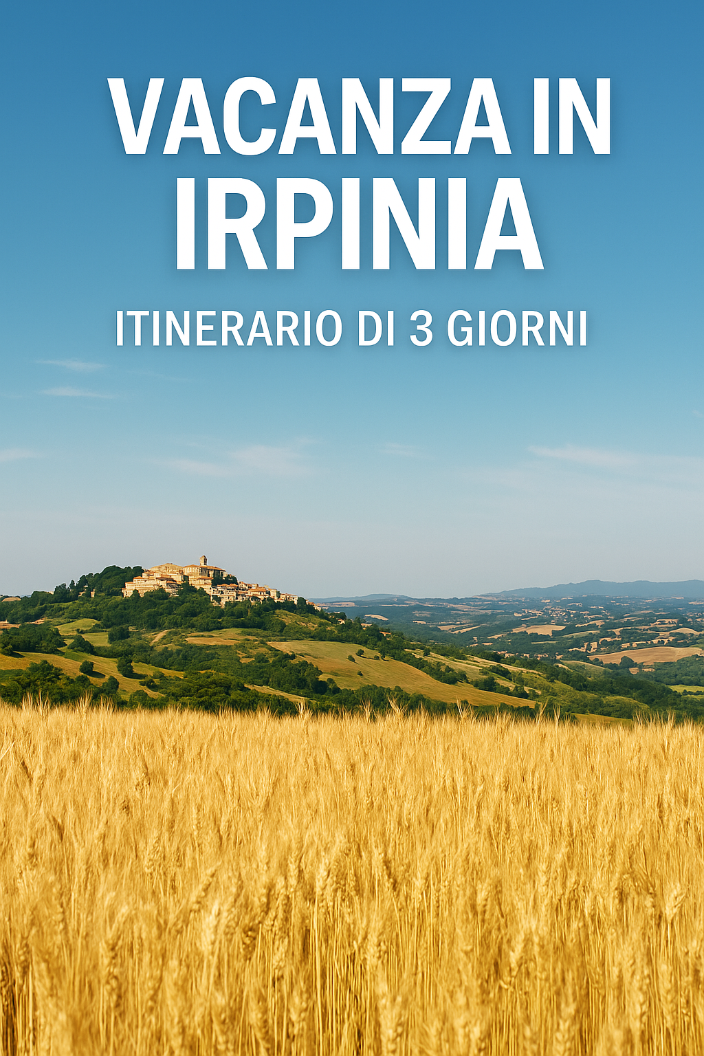 Esempio dimostrativo generato da ChatGPT di un Piano dettagliato per una vacanza in Irpinia di 3 giorni, pensata per farti vivere un’esperienza autentica tra borghi, gastronomia, natura e cultura.
