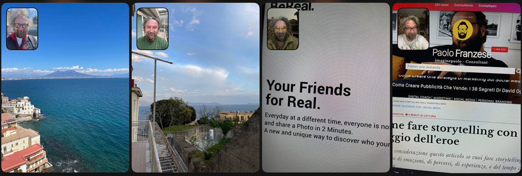 - Includono istantanee scattate contemporaneamente, dalla fotocamera anteriore e posteriore.