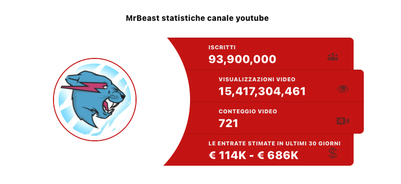 La sua carriera inizia nel 2012 su YouTube, aveva 13 anni, il suo canale YouTube si chiama “MrBeast6000” ed oggi ha 94,3 Milioni di iscritti.