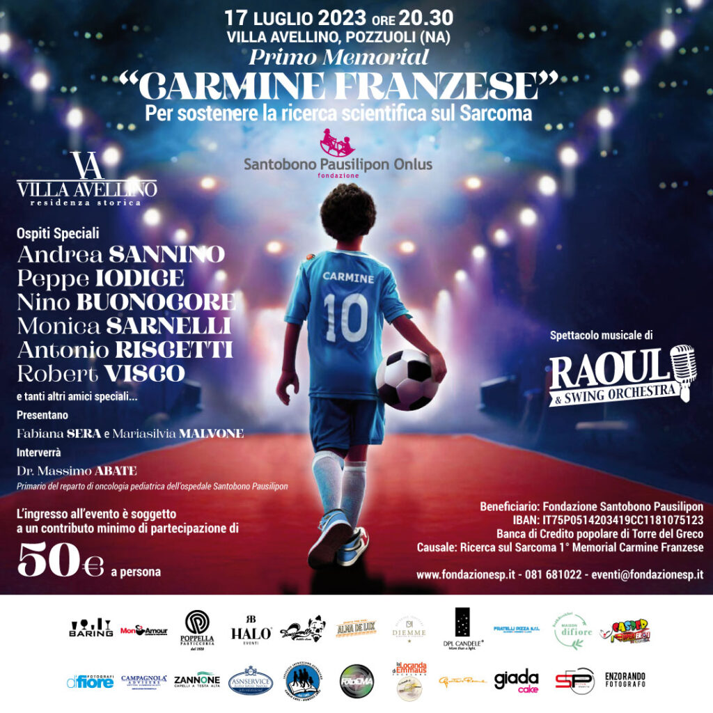 Sarà il Primo Memorial “CARMINE FRANZESE”, e vorrei che tu ti unisca a noi per sostenere la ricerca scientifica sul Sarcoma attraverso la Fondazione Santobono Pausilipon Onlus.