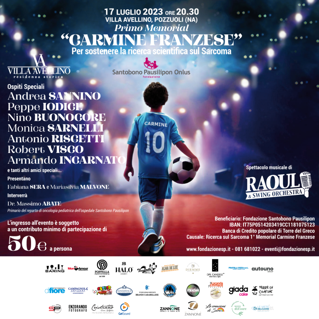 Sarà il Primo Memorial “CARMINE FRANZESE”, e vorrei che tu ti unisca a noi per sostenere la ricerca scientifica sul Sarcoma attraverso la Fondazione Santobono Pausilipon Onlus.