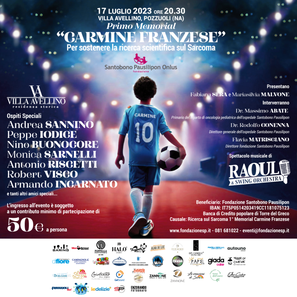 Sarà il Primo Memorial “CARMINE FRANZESE”, e vorrei che tu ti unisca a noi per sostenere la ricerca scientifica sul Sarcoma attraverso la Fondazione Santobono Pausilipon Onlus.