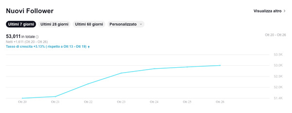 Infine, il numero totale di follower è aumentato di 1611, con un tasso di crescita del 3.13%. Questo indica che il mio approccio sta generando interesse e coinvolgimento tra il pubblico di TikTok.