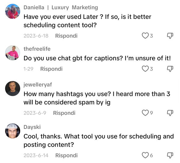 Commenti che tradotti in italiano possono essere validi contenuti per i tuoi prossimi video:
